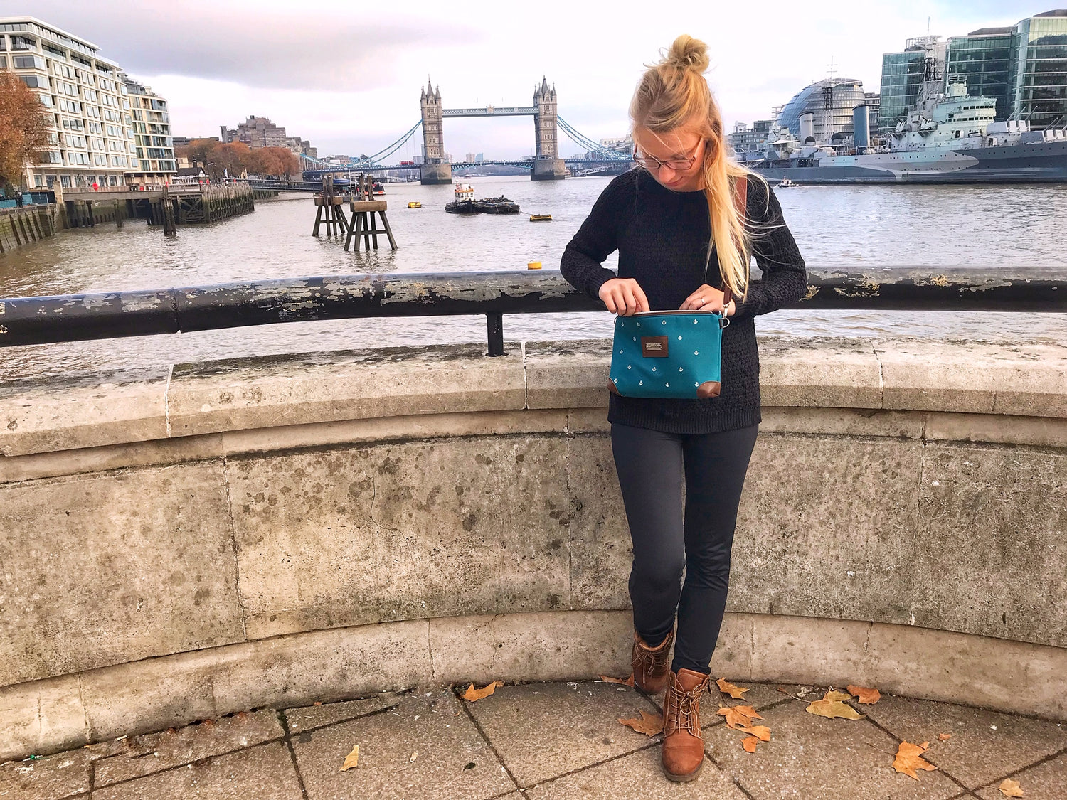 Alle unsere Taschen bestehen von außen aus Kunstleder oder Kork & Segeltuch, sind wasserundurchlässig und abwischbar.