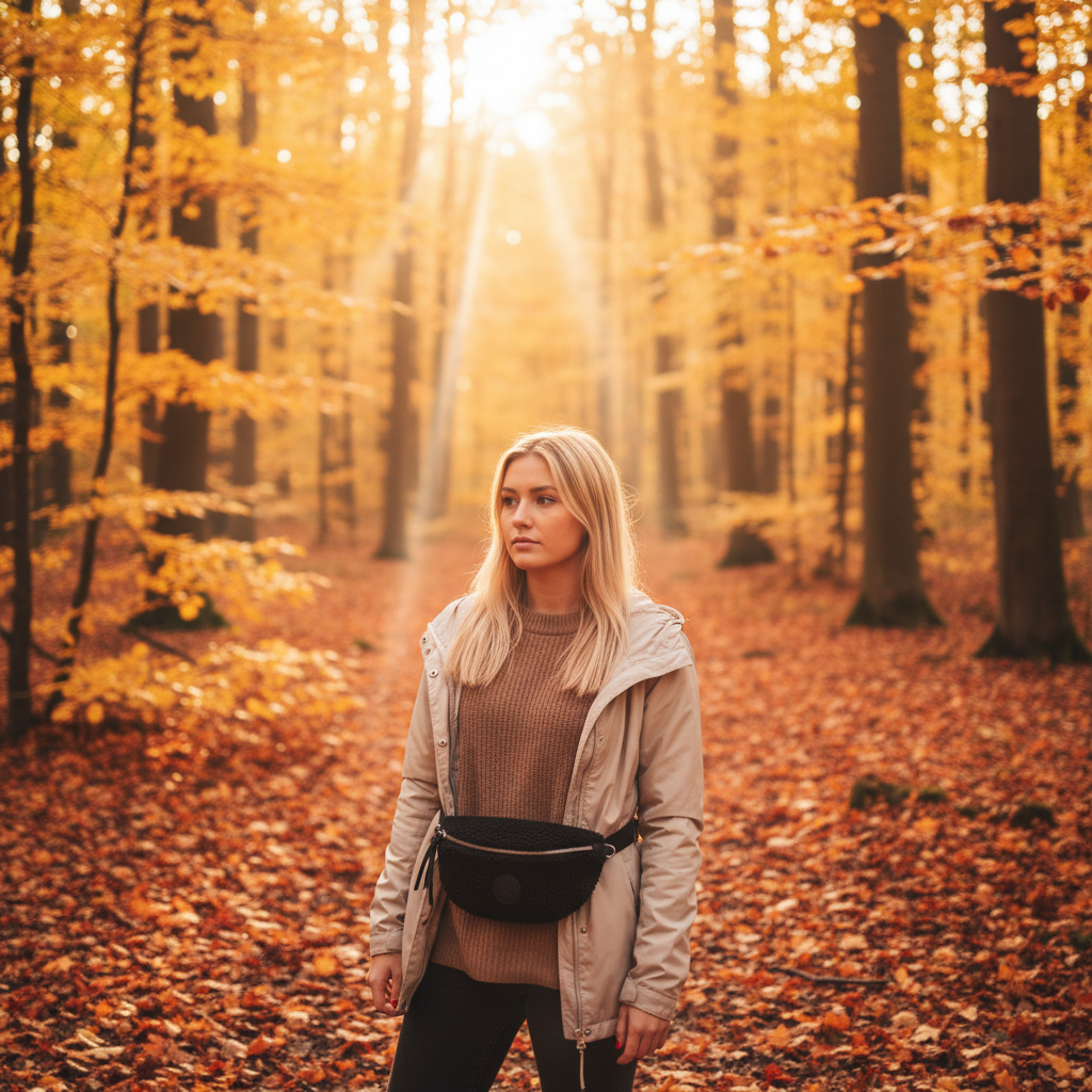 Trage die Tasche um die Hüfte oder als Umhängetasche über die Schulter, so wie du möchtest.