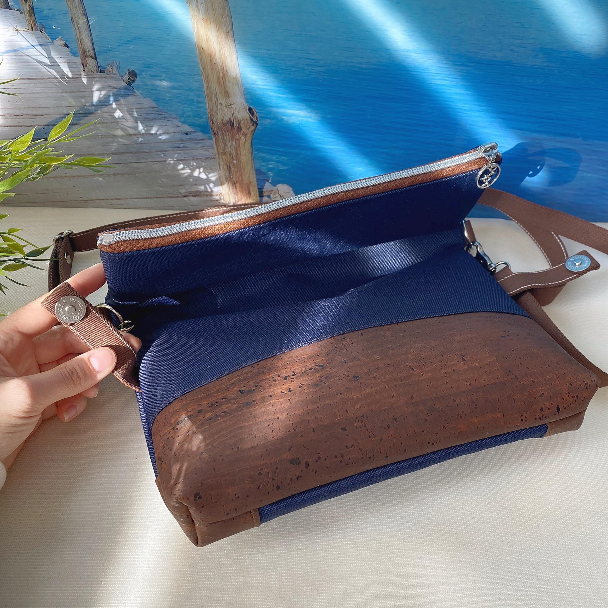 Alle unsere Taschen bestehen von außen aus Kunstleder oder Kork & Segeltuch, sind wasserundurchlässig und abwischbar.