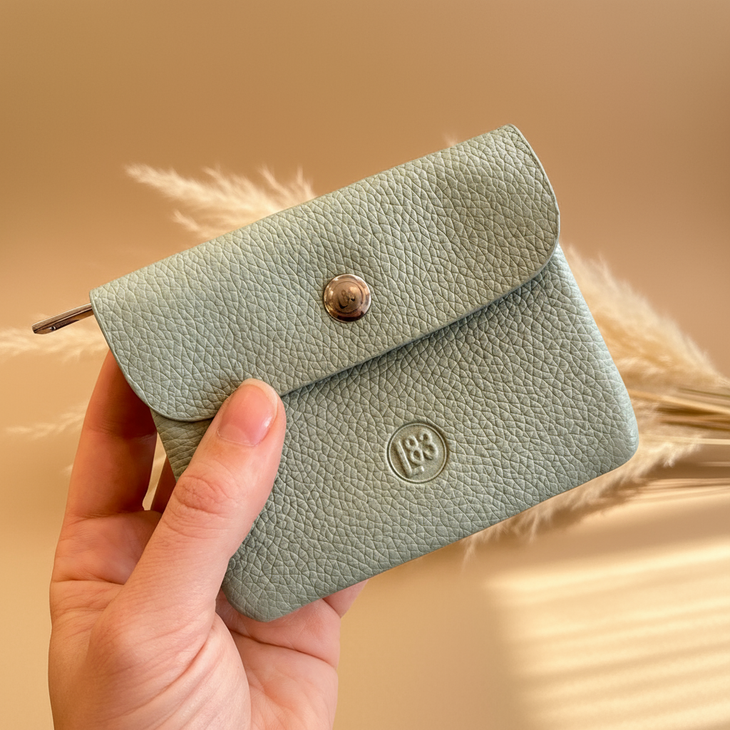 Perfekt organisiert und griffbereit! Für Karten, Bargeld und Kleinigkeiten. Die magnetische Kappe auf der Vorderseite mit silbernem Verschluss hält alles sicher zusammen, während das Reißverschlussfach deine kleineren Schätze verstaut.