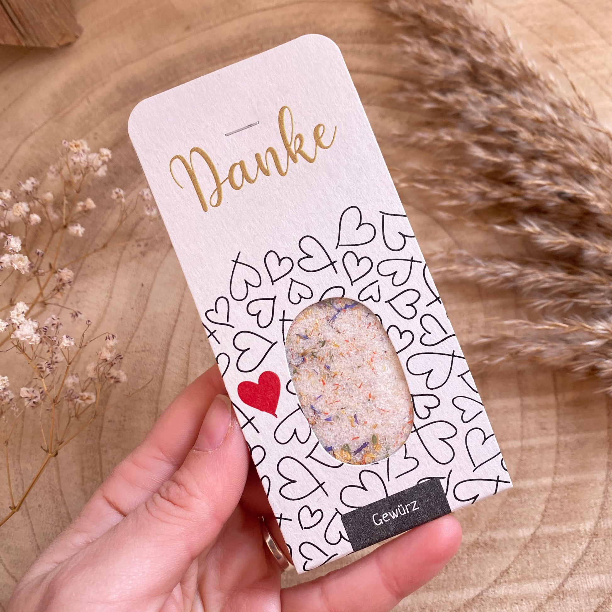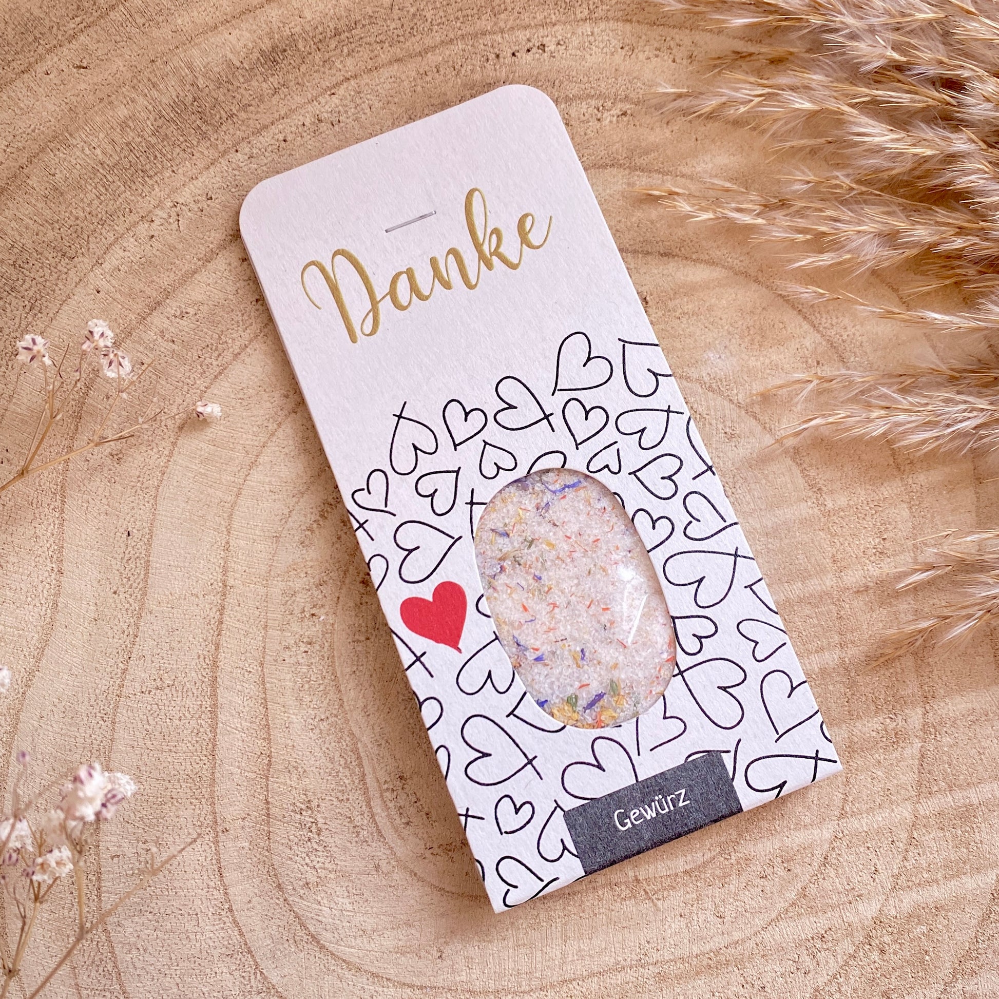 Grüße mit Geschmack: Diese Genusskarte kombiniert herzliche Worte mit sorgfältig ausgewählten Gewürzen. Das transparente Fenster macht die Überraschung im Inneren sichtbar – perfekt für Kochbegeisterte, die sich über praktische und persönliche Geschenke freuen.
