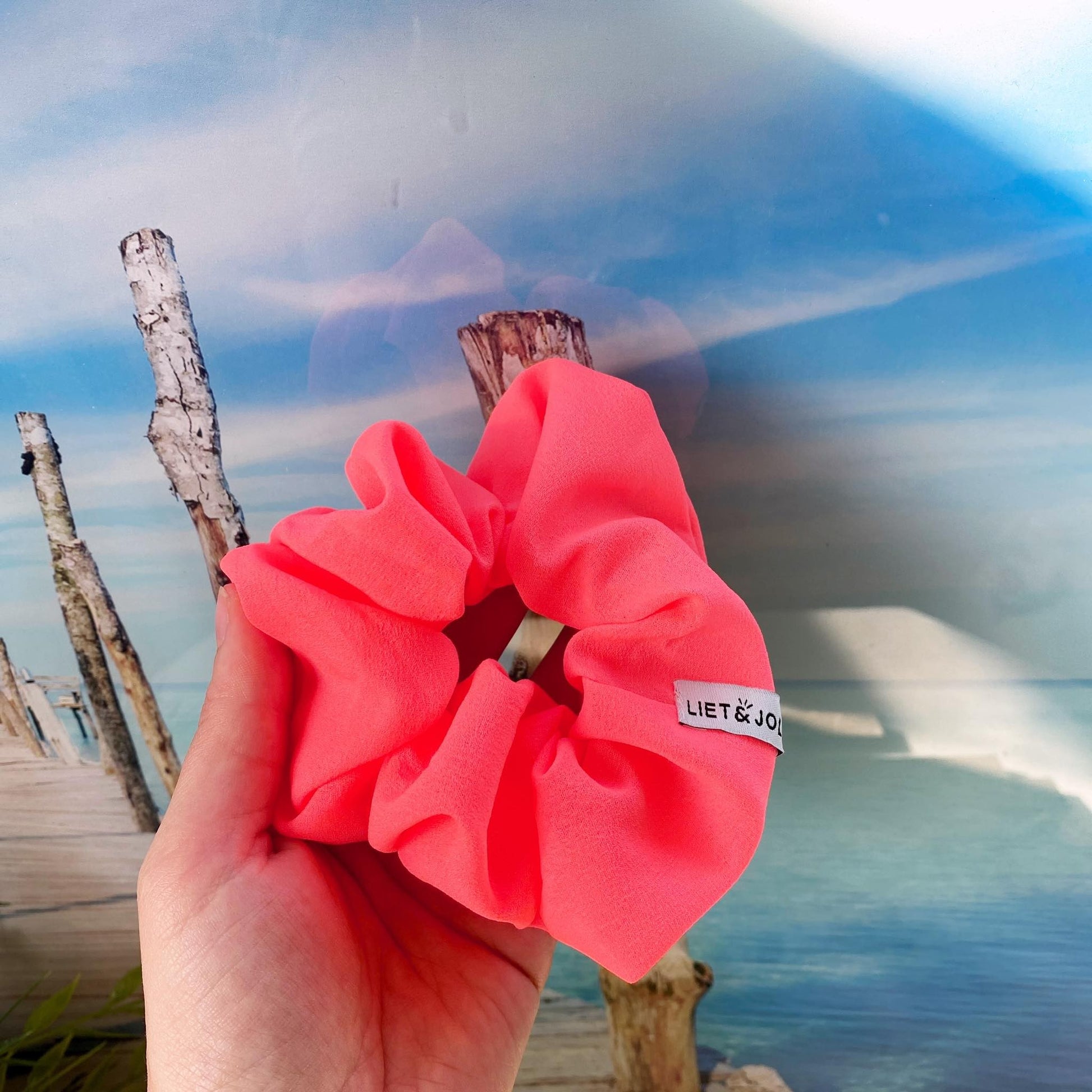 Das Haargummi besteht aus leichten und sommerlichen Polyester und hat einen Durchmesser von ca. 13 cm.