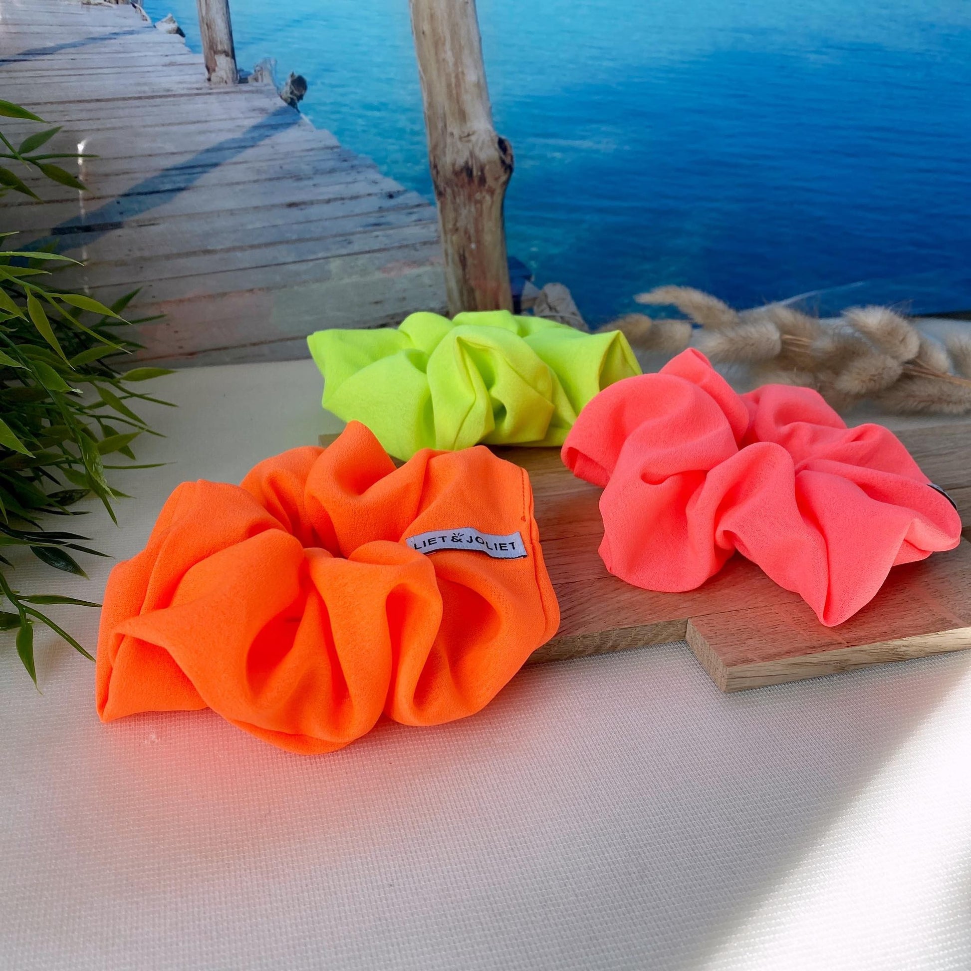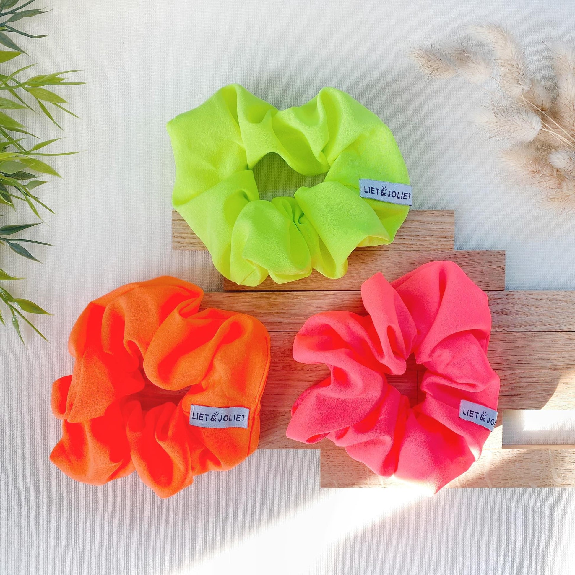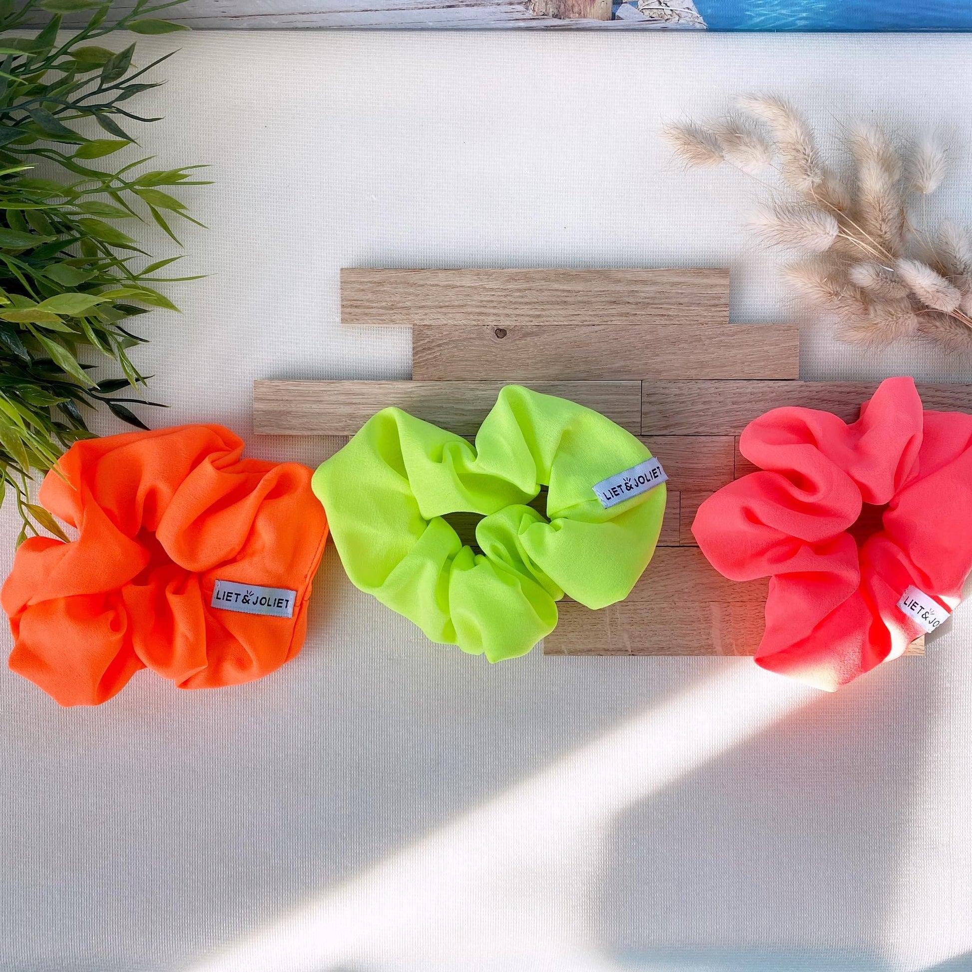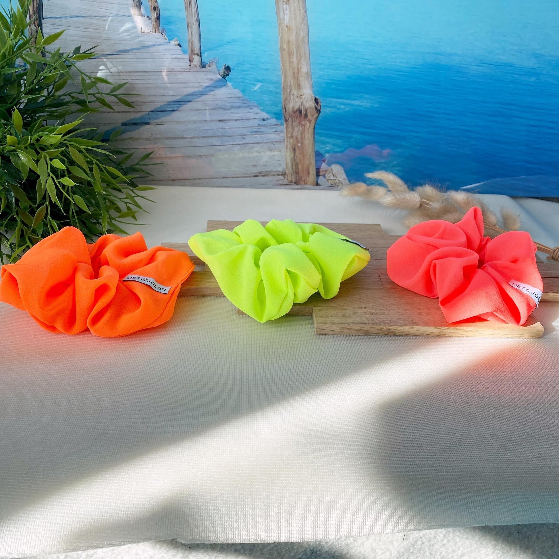 Das Haargummi ist in verschiedenen Neonfarben erhältlich.