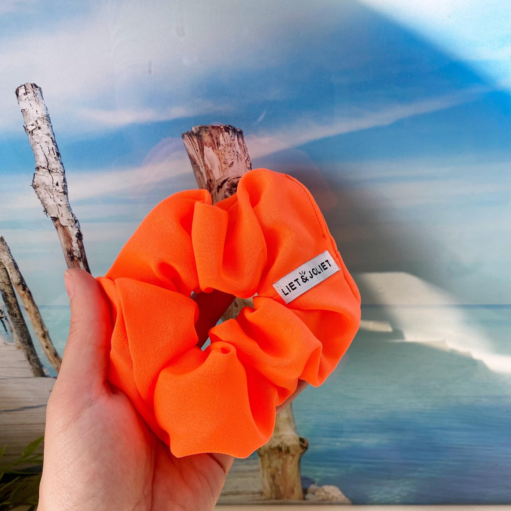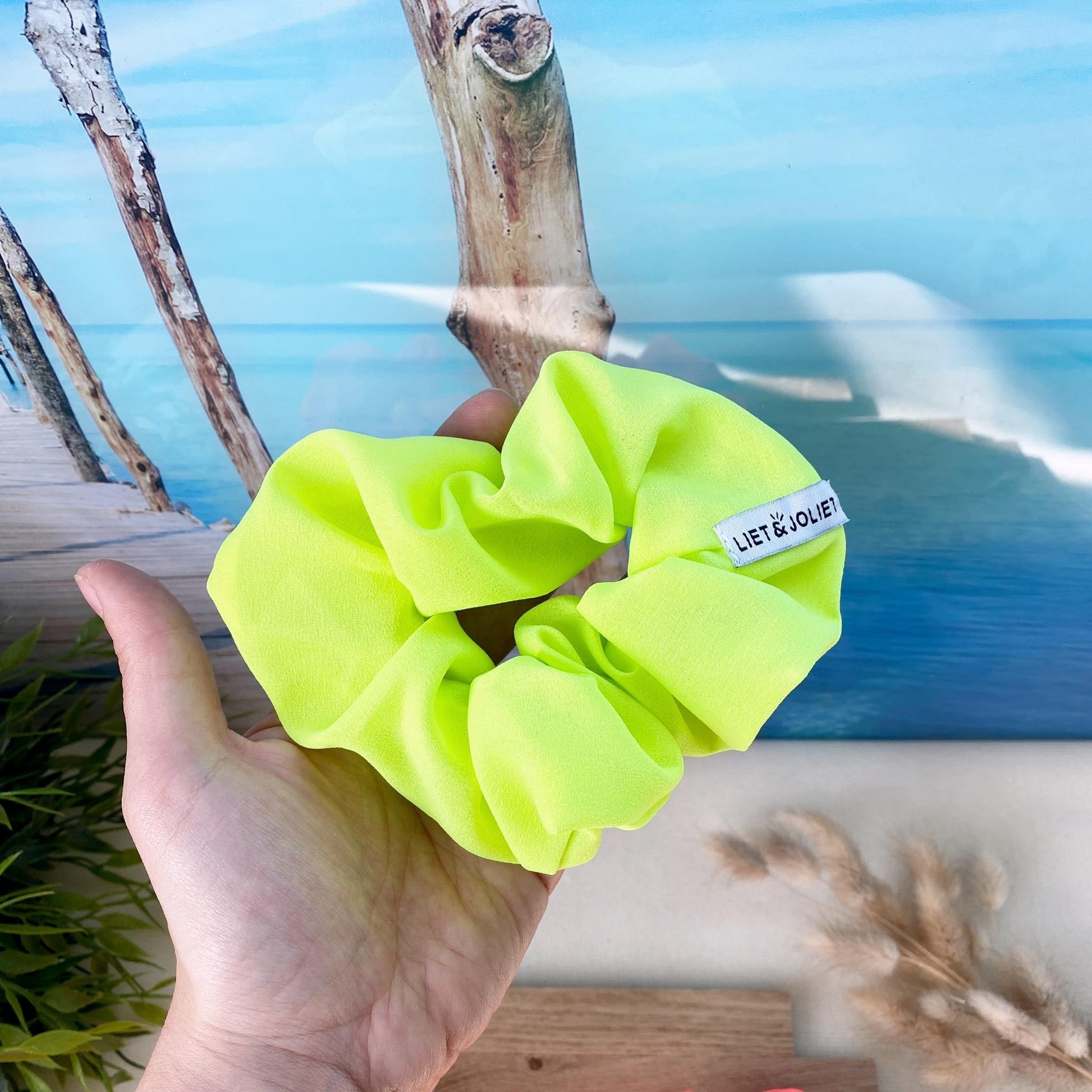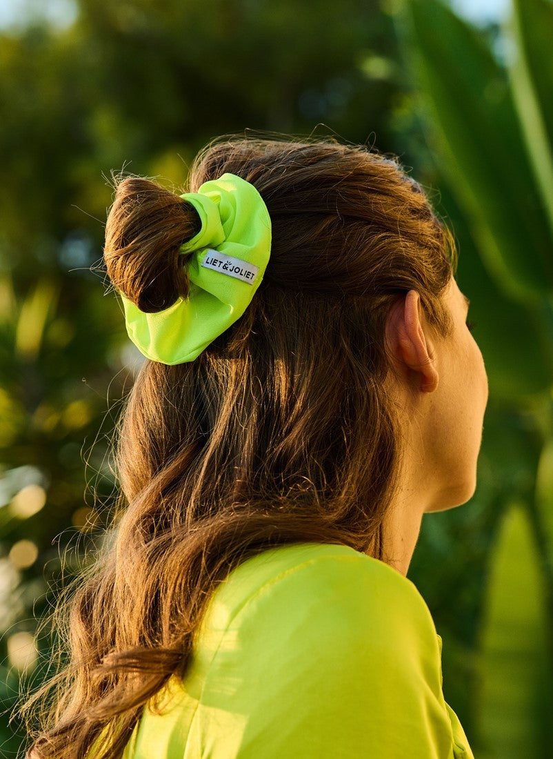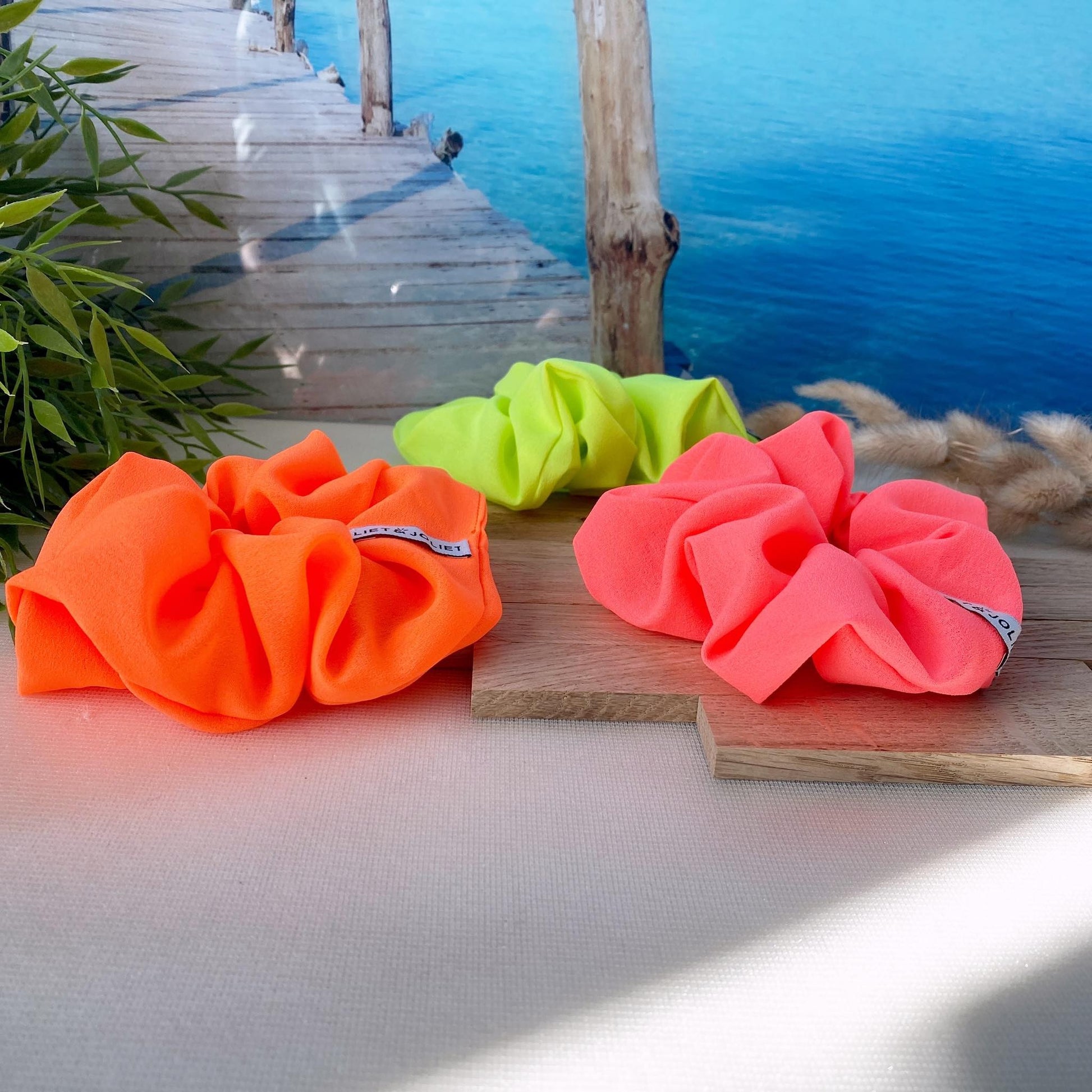 Das Haargummi ist in verschiedenen Neonfarben erhältlich.