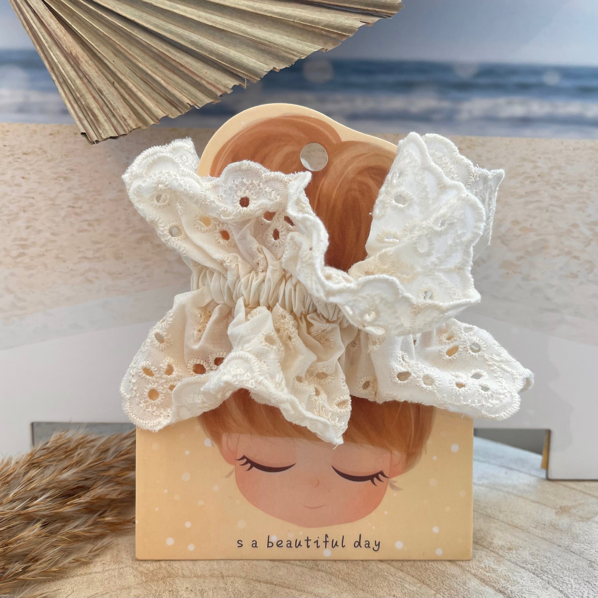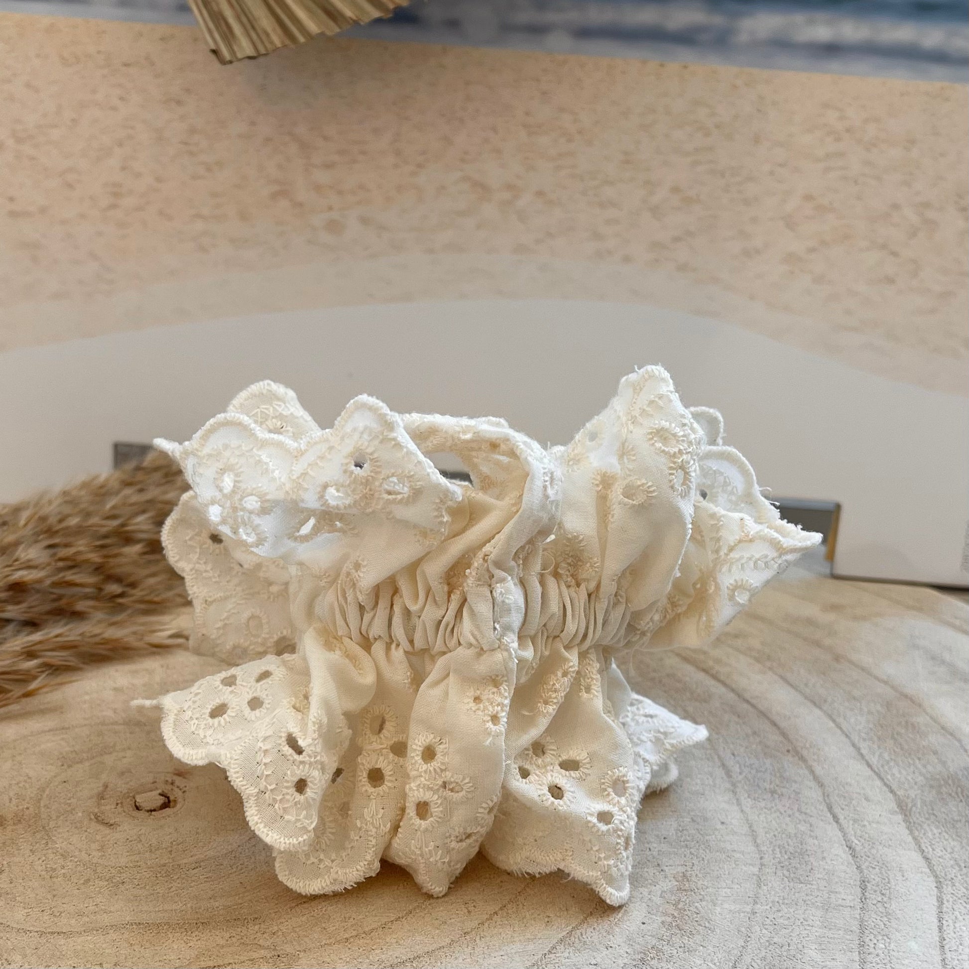 Das Haargummi besteht aus robuster Baumwolle in Strick Optik.