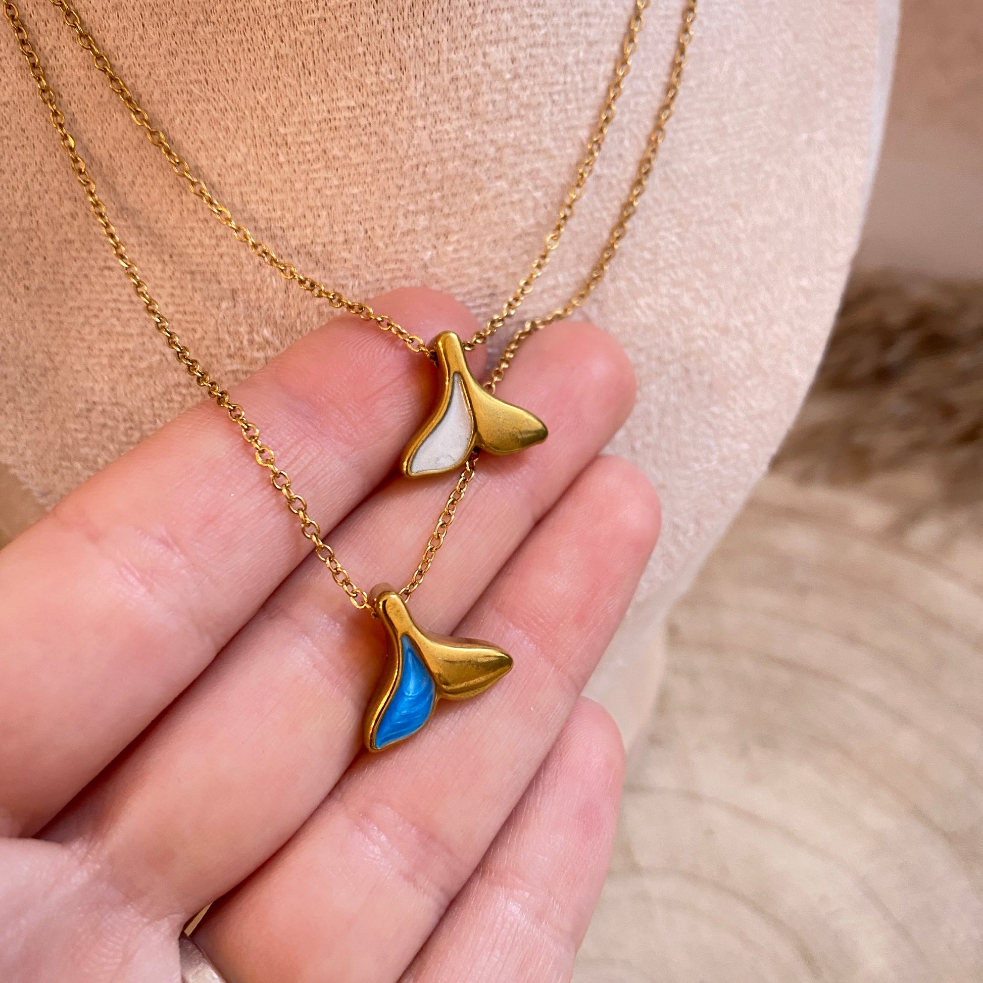 Halskette Edelstahl -Flosse Perlmutt-