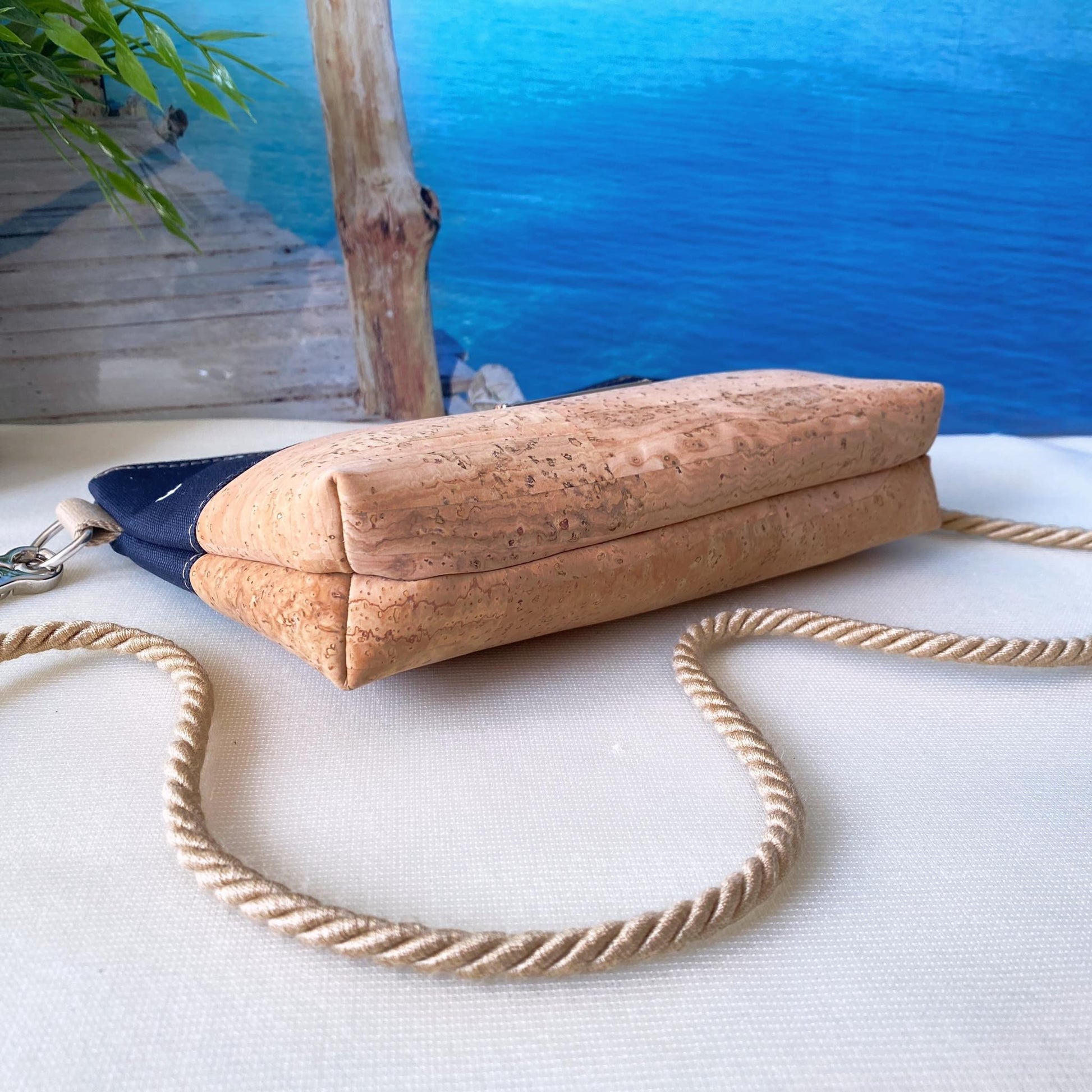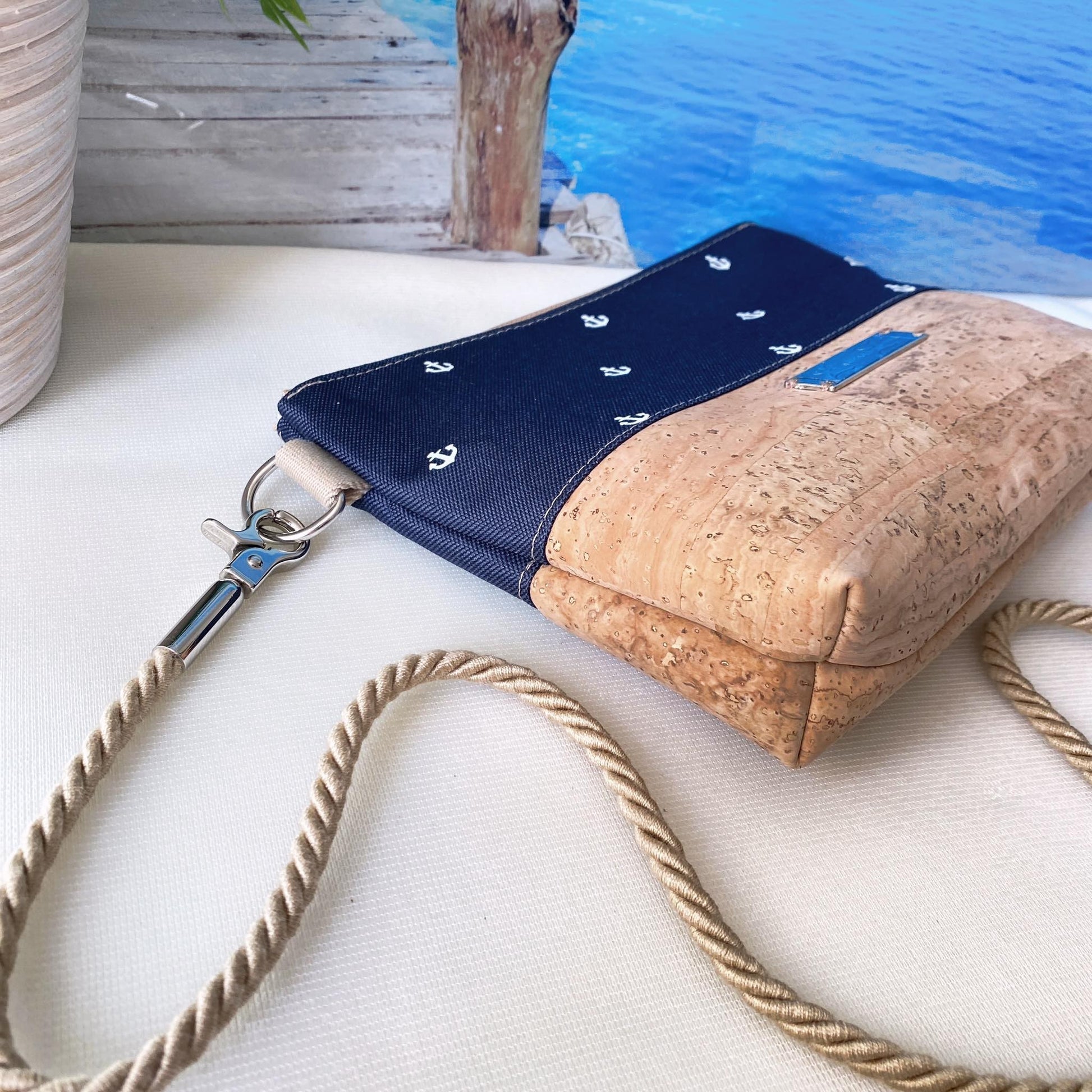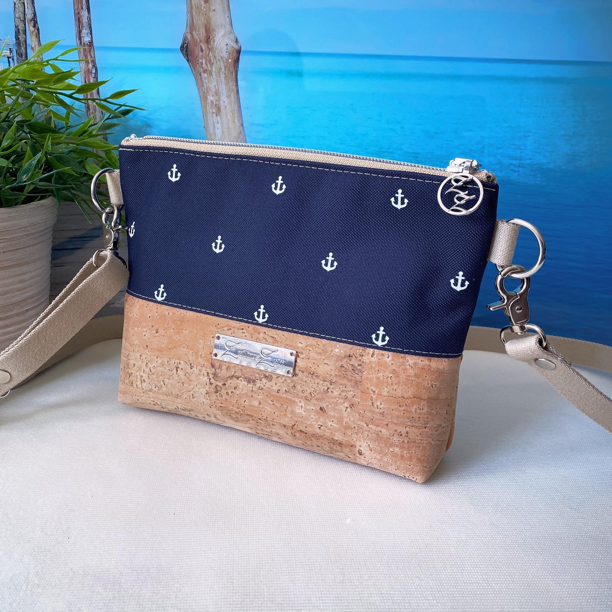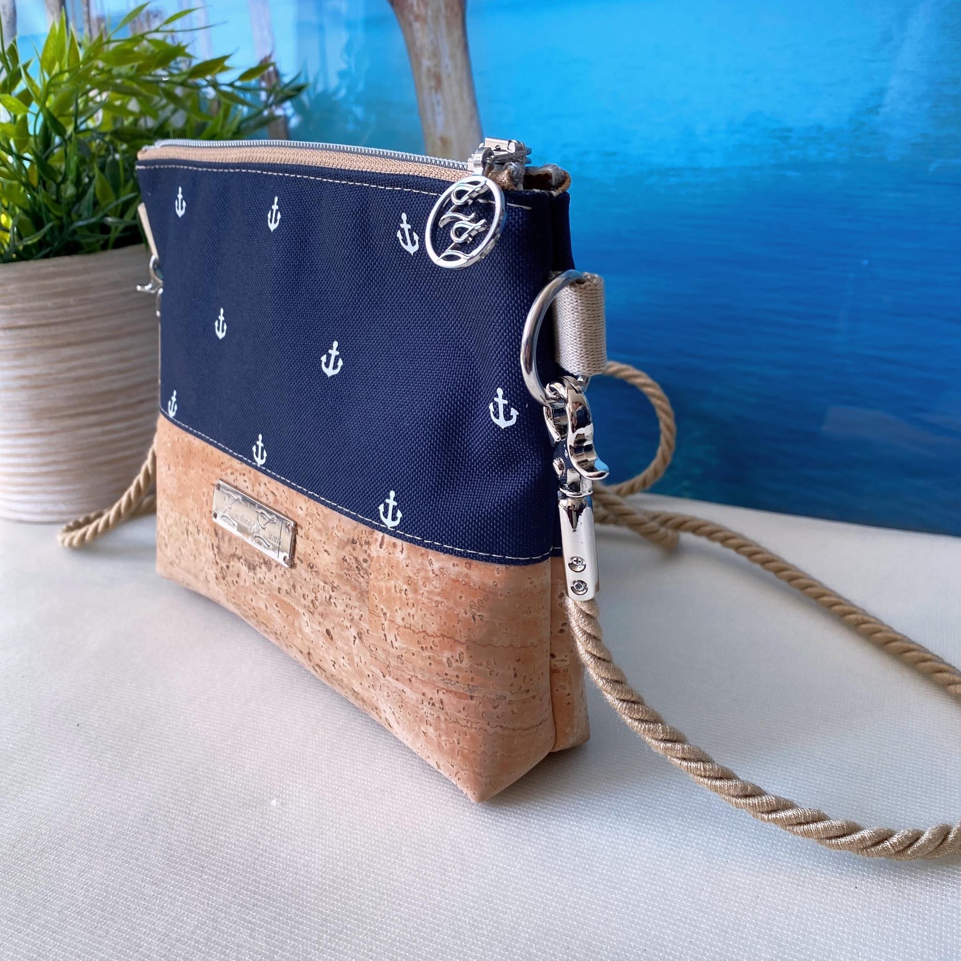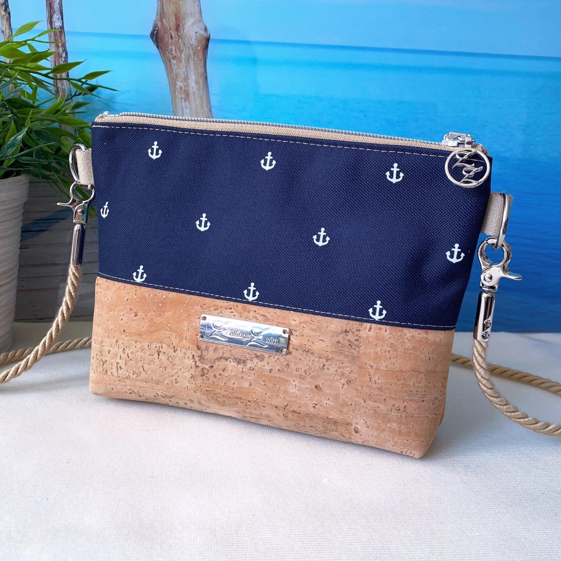 Kleine Umhängetasche *Anker* Weiß/Nachtblau/Kork Hellbraun