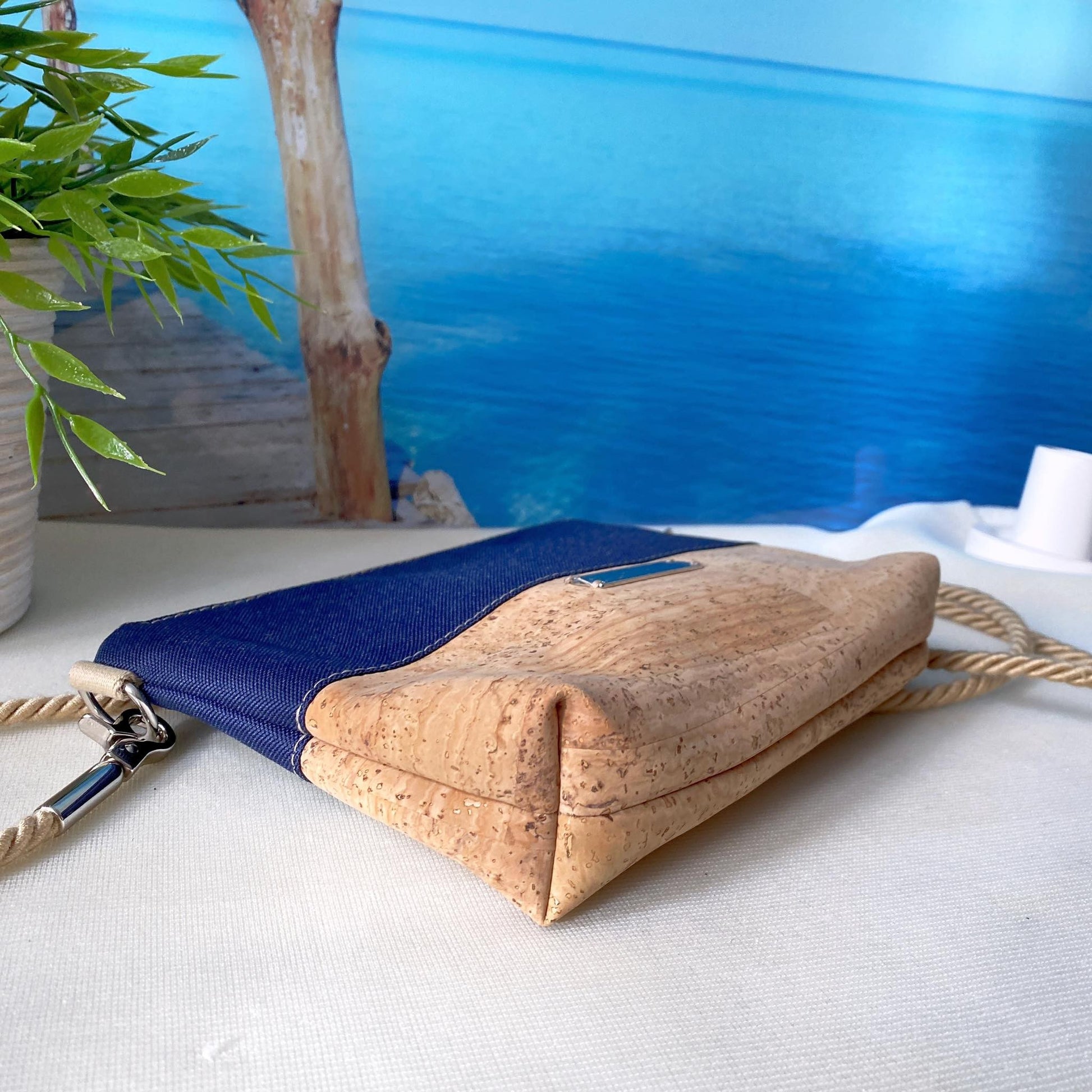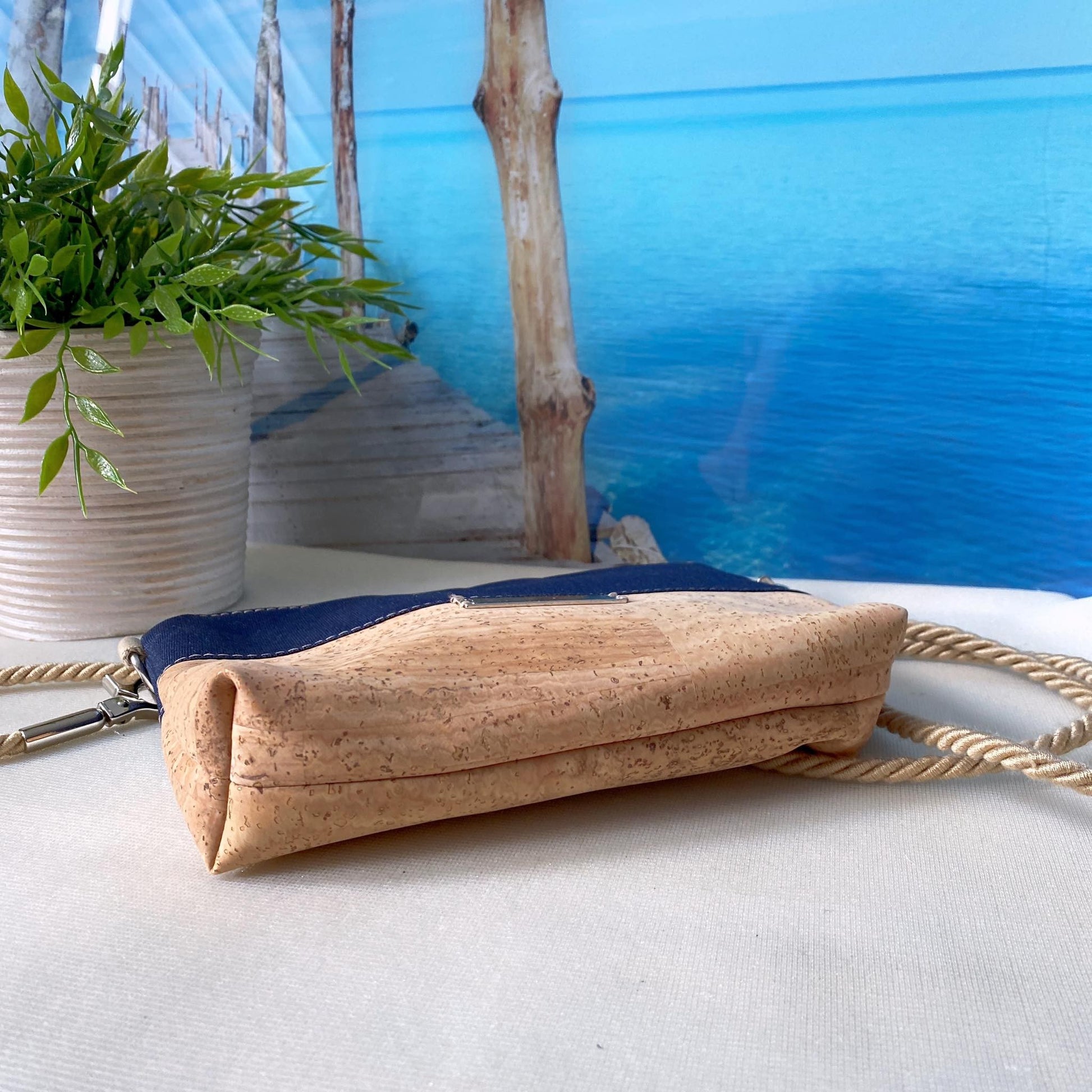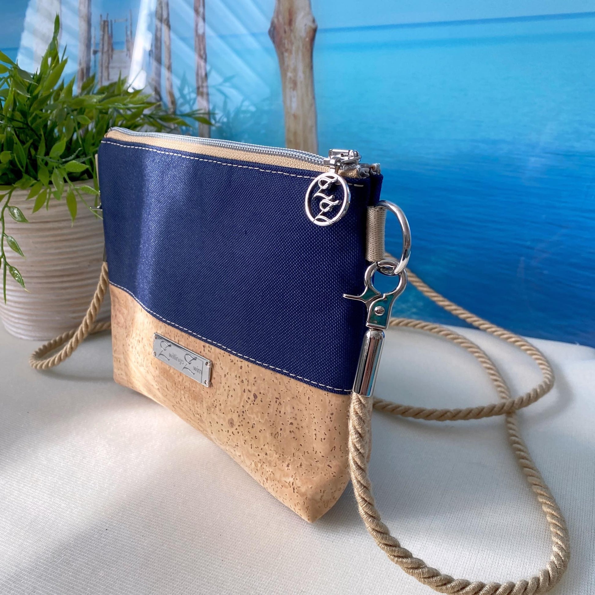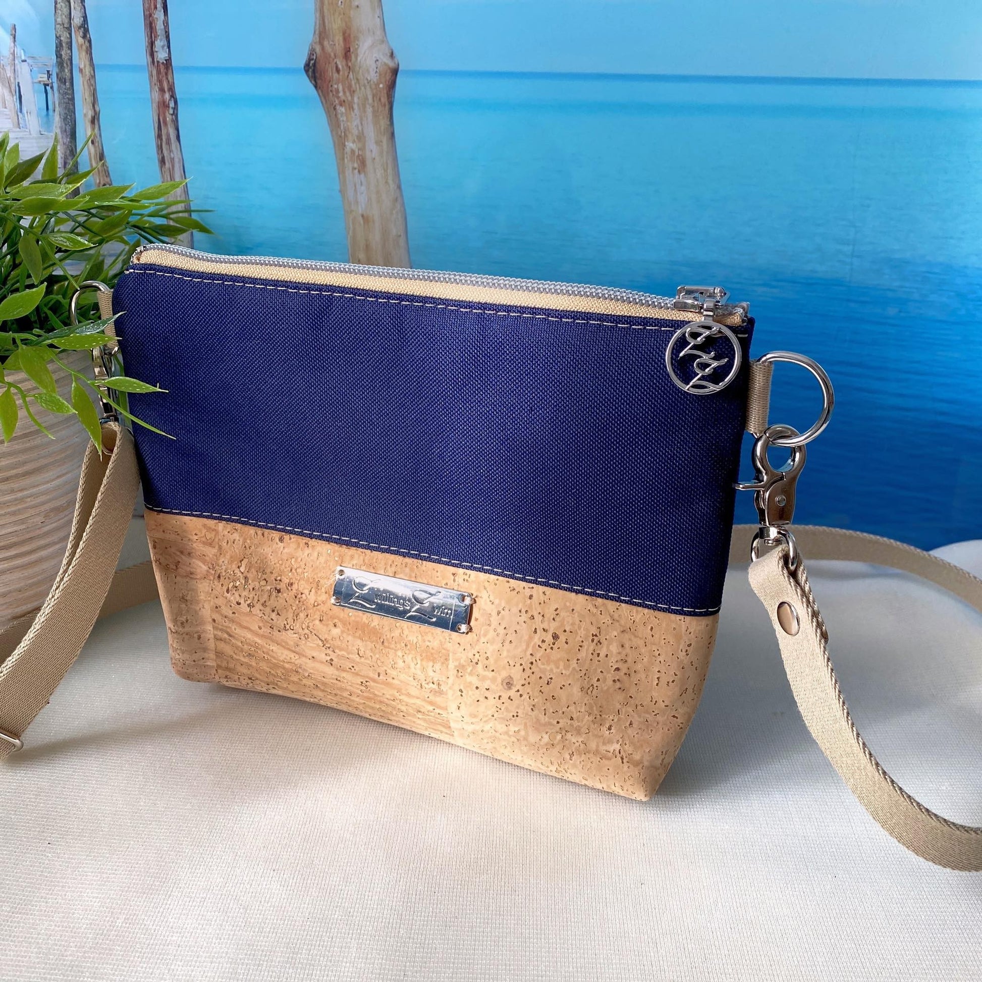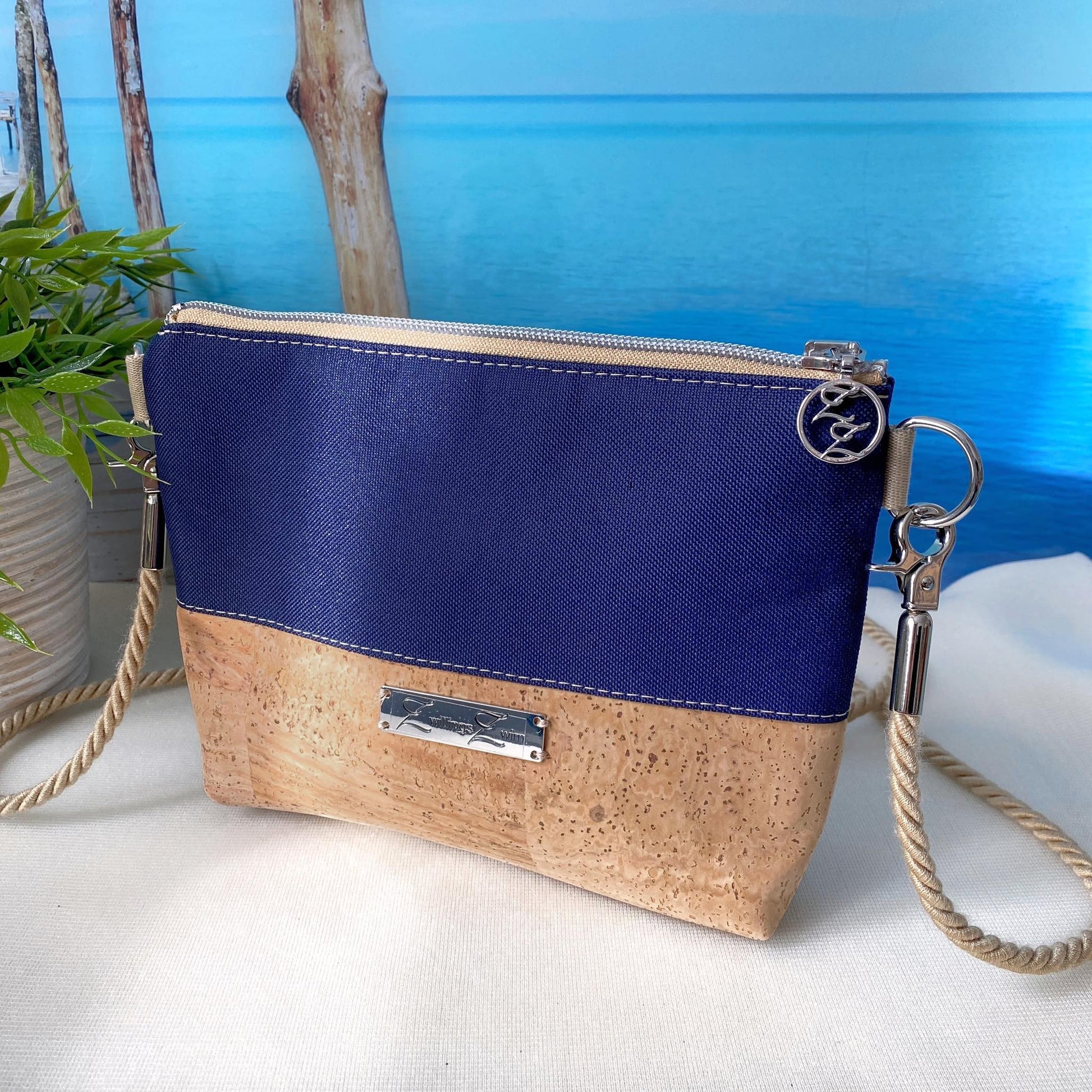 Kleine Umhängetasche *ohne Motiv* Nachtblau/Kork Hellbraun