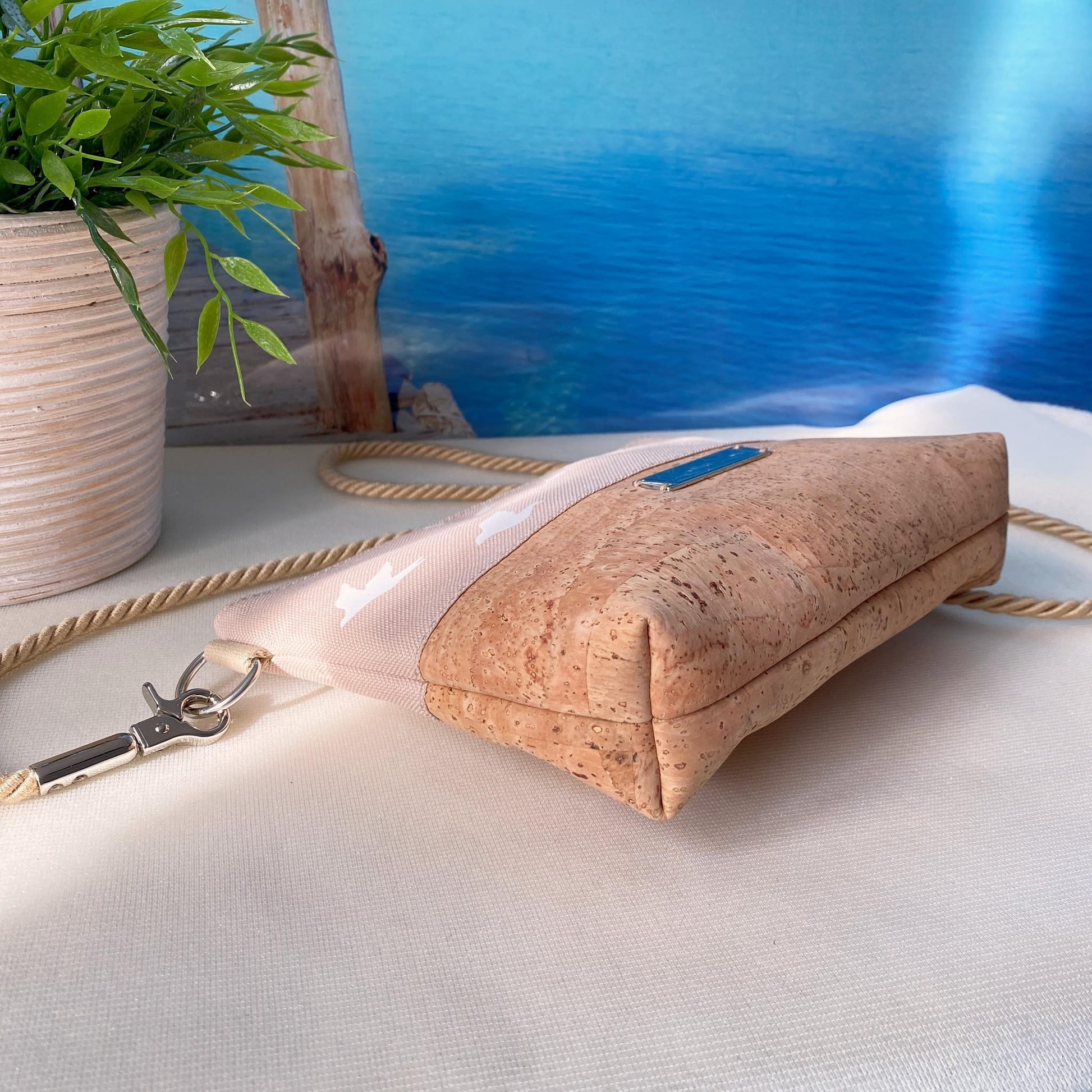Kleine Umhängetasche *Vögel* Weiß/Beige/Kork Hellbraun