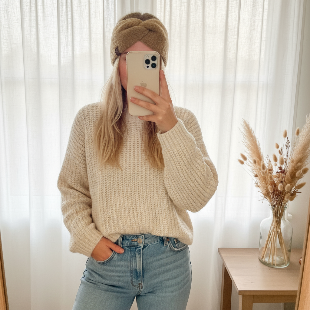 Das weiche und wärmende Stirnband ist dein zuverlässiger Begleiter durch die frostige Jahreszeit. Das vegane Lederband verleiht dem Accessoire das gewisse Etwas. Kombiniere das Stirnband mit einem passenden Dreiecks-Schal.