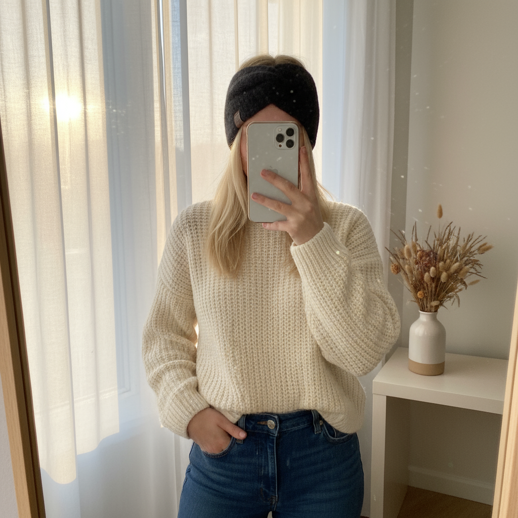 Das weiche und wärmende Stirnband ist dein zuverlässiger Begleiter durch die frostige Jahreszeit. Das vegane Lederband verleiht dem Accessoire das gewisse Etwas. Kombiniere das Stirnband mit einem passenden Dreiecks-Schal.