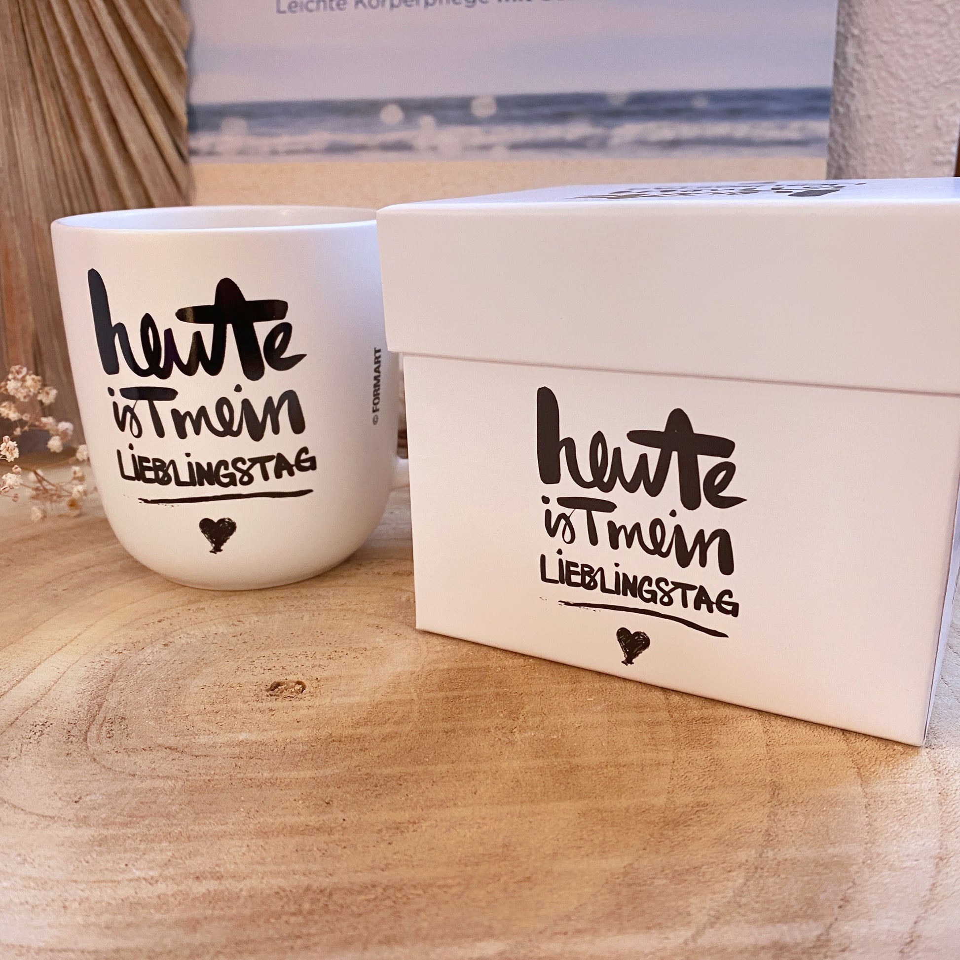 Stylische und handschmeichelnde Tasse mit maritimen Motiv, einem Volumen von 0,4l und einer Höhe von 10cm, verpackt in einem Geschenkkarton. Die Tasse hat eine matte Oberfläche.