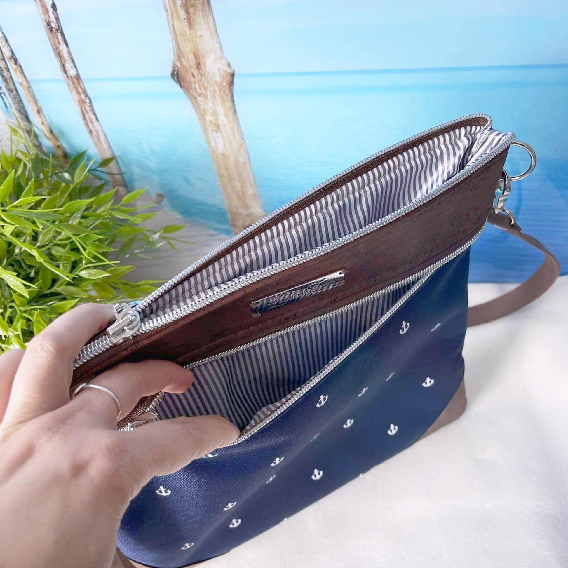 Alle unsere Taschen bestehen von außen aus Kunstleder oder Kork & Segeltuch, sind wasserundurchlässig und abwischbar.